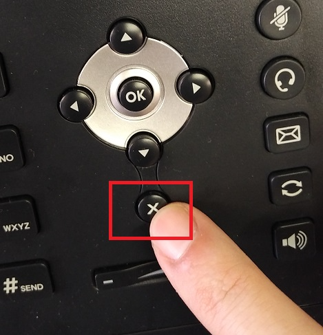 1. Press and hold the "X" button on your Yealink phone for 10 seconds:
